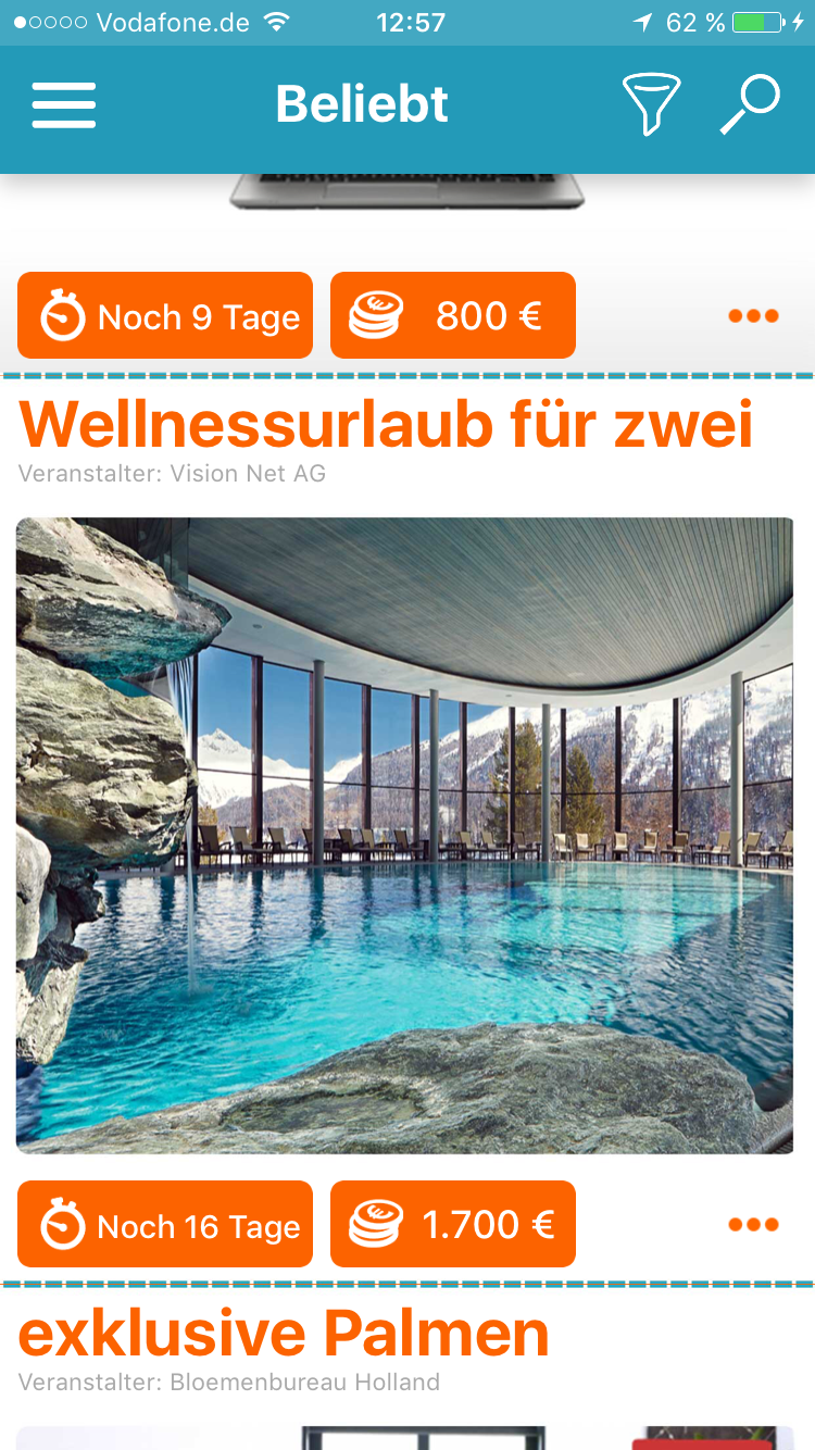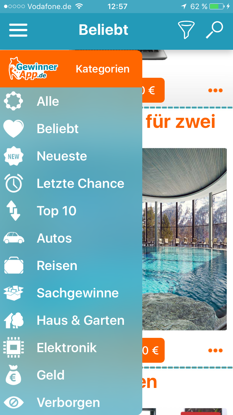 Die Auswahl der Gewinnspiele ist etwas kleiner: 68 aktive Gewinnspiele waren zum Testzeitpunkt verfügbar. Dafür bot – als einziger im Test – “Gewinner App” ausschließlich seriöse Gewinnspiele an. Wir konnten keine dubiosen Veranstalter entdecken.
